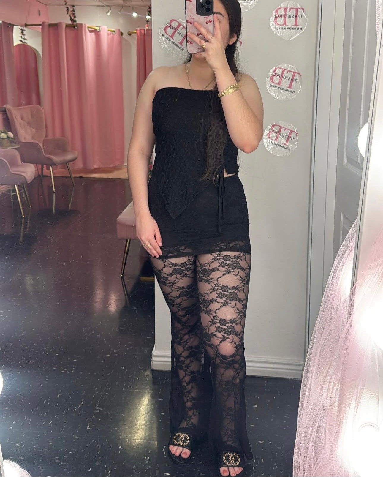 Malla con falda de encaje en color Negro